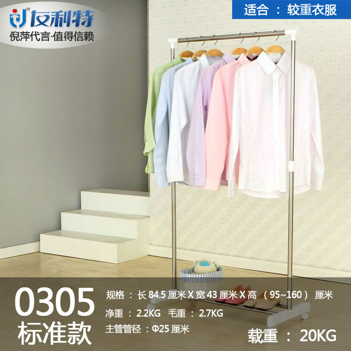 產(chǎn)品型號:YLT-0305 產(chǎn)品名稱:單桿落地式晾衣架 產(chǎn)品尺寸:850x430x(1000-1600)mm 材 質(zhì):不銹鋼復(fù)合管 Φ25.4,Φ22.2,Φ19.1、工程塑料