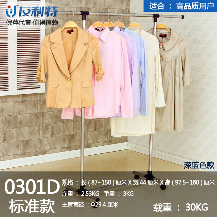產(chǎn)品型號:YLT-0301D 產(chǎn)品名稱:單桿落地式晾衣架 產(chǎn)品尺寸:(870-1500)x440x(975-1600)mm 材 質(zhì):不銹鋼復(fù)合管 Φ29.4,Φ25.4,Φ22.2、工程塑料