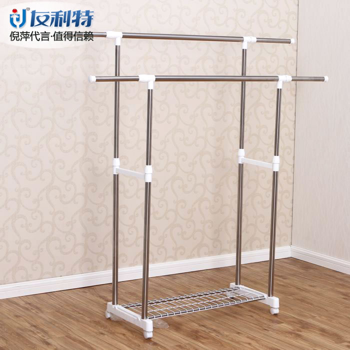 產(chǎn)品型號:YLT-0329 產(chǎn)品名稱:雙桿落地式晾衣桿 產(chǎn)品尺寸:(1010-1500)x430x(950-1600)mm 材 質(zhì):不銹鋼復(fù)合管 Φ29.4,Φ25.4,Φ19.1、工程塑料