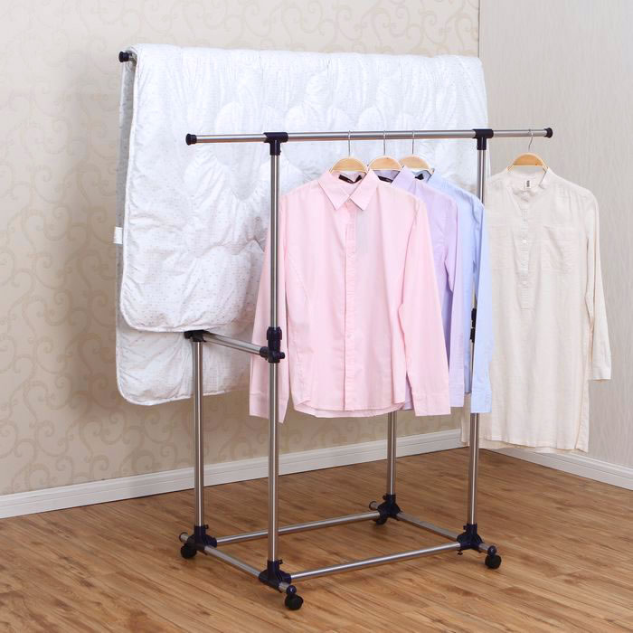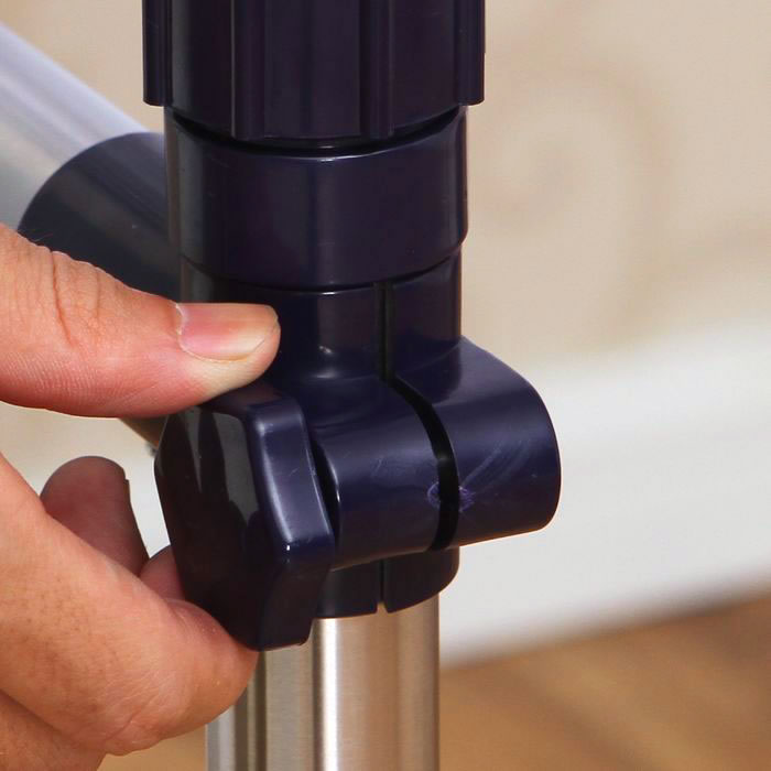 產(chǎn)品型號:YLT-0302D 產(chǎn)品名稱:雙桿落地式晾衣桿 產(chǎn)品尺寸:(870-1500)x680x(1000-1650)mm 材 質(zhì):不銹鋼復(fù)合管 Φ29.4,Φ25.4,Φ22.2、工程塑料